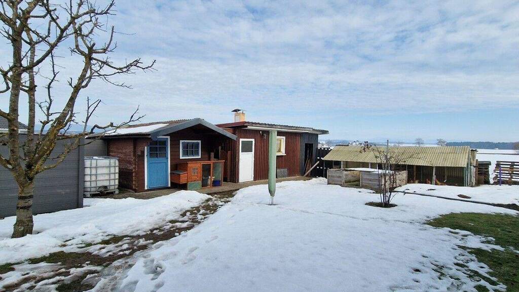 Auch im Außenbereich herrscht reichlich Platz. Zwischen viel Grün können die Kinder spielen und es gibt Gartenhäuser, Hochbeete, ein paar Hühner und Platz zum Sitzen neben und hinter dem Haus. Ergänzt wird das Ganze durch schöne Details wie eine große Zisterne im Stil eines Brunnens. Ein Lieblingsplatz ist die windgeschützte Terrasse mit unverbaubarem Blick in die Ferne im EG und der überdachte Balkon darüber im DG. Eine äußerst praktische Besonderheit ist der überdachte und verglaste Bereich vor dem Hauseingang, der den Eingang mit Garage und Garten verbindet. Eine gute Ergänzung für Feiern im Garten bietet obendrein die Außenküche im Nebengebäude mit Garagentrakt.