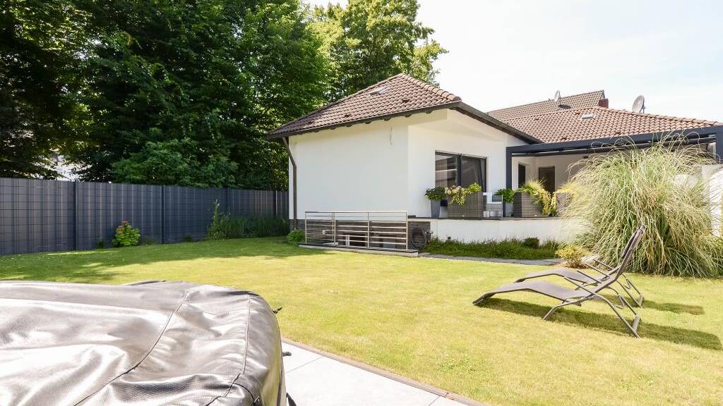 Das hier angebotene Objekt wurde ursprünglich im Jahre 1958 - auf einem ca. 477 m² großen Grundstück in zentraler Lage - als unterkellertes Einfamilienhaus (Bungalow) in massiver Bauweise errichtet. Im Laufe der Jahre erfolgten immer wieder Renovierungen/Modernisierungen bis hin zur 2018 umfangreich durchgeführten Komplettsanierung, gefolgt von Verschönerungen und Angleichung des zeitgemäßen und modernen Wohnstandards. Durch die Verbauung hochwertiger Materialien und einem modernen Grundkonzept bietet die Immobilie ein gehobenes und angenehmes Wohnambiente, welches sich auch im Außenbereich (Terrassen) fortsetzt. Die ca. 152,6 m² große Wohnfläche erstreckt sich ausschließlich über das komplett mit Fußbodenheizung und einer hochwertigen, italienischen Bodenfliese ausgestattete Erdgeschoss und gestaltet sich aus einem Dielenbereich mit Treppe zum Unter-/Kellergeschoss, insgesamt zwei Schlaf- bzw. Kinderzimmer, einem großen Bad mit Fenstern, Wanne und begehbarer Dusche, einem großzügigem Küchenbereich mit Terrassenzugang und hochwertiger NOLTE-Einbauküche sowie einem Wohn-/Essbereich mit einem weiteren Terrassenzugang. Die 2022 neu errichtete Gartenterrasse und der angrenzende, komplett eingefriedete Garten sind in Südlage ausgerichtet. Die Errichtung der Glas-Terrassenüberdachung (Kosten EUR 18.000,00) erfolgte 2024. Ein zweiter Terrassenbereich ist über den Garten erreichbar und in Südwestlage ausgerichtet. Dem Objekt ist eine hausinterne, ca. 7 Meter lange Garage zugehörig, die über eine abschüssige Rampe im UG befahrbar ist und durch einen hausinternen Zugang in das Kellergeschoss führt. Das über die Innentreppe und die Garage intern begehbare Unter-/Kellergeschoss verfügt - neben einer Waschküche, Heizungs-/Öltankkeller/HAR und einem Abstellkeller, ferner über einen großen, beheizten und wohnlich ausgebauten Mehrzweckraum mit Zugangsmöglichkeiten über eine Außentreppe und einem Gäste-WC. Dieser Bereich stellt viele Nutzungsmöglichkeiten zur Verfügung und kann dementsprechend multifunktional beispielsweise vom Arbeitsbereich/Büro über Hobby-, Party-, Spielkeller bis hin zum Gästebereich genutzt werden. Der Dachboden stellt zudem weiteren Stauraum zur Verfügung. Sämtliche Einrichtungen und Geschäfte des täglichen Bedarfs: Bahnhof, Busbahnhof, Krankenhaus, Kindergärten, Schulen etc. sind alle fußläufig erreichbar, was das Objekt für Familien und Paare mit großem Platzbedarf sehr attraktiv macht.