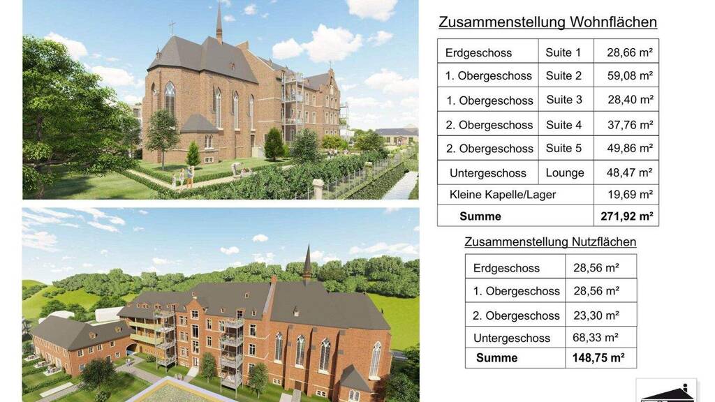 Die Kernsanierung des Klosters Olewig bietet eine seltene Kombination aus Sicherheit (langfristiger Mietvertrag) und außergewöhnlicher Rendite. Insbesondere die Denkmal-AfA ermöglicht signifikante steuerliche Vorteile für Investoren. ZUKUNFTSPROJEKT Nutzen Sie die seltene Gelegenheit, ein Stück Trierer Stadtgeschichte zu erwerben und für die Zukunft neu zu definieren. Die Kernsanierung des Klosters Olewig bietet eine seltene Kombination aus Sicherheit (langfristiger Mietvertrag) und außergewöhnlicher Rendite. Insbesondere die Denkmal-AfA ermöglicht signifikante steuerliche Vorteile für Investoren Das Projekt verbindet den historischen Charme eines Klosters mit modernster High- End Ausstattung. Das Untergeschoss besticht durch eine exklusive Wein Lounge, während die Obergeschosse Raum für luxuriöse Wohneinheiten bieten. Historisches Denkmal - Ensemble mit exklusiven Suiten & Wein - Lounge 5 Suiten + 1 Wein -Lounge Wohnfläche: ca 271,92m² Nutzflächen: 148,75m² Ausstattung: Hublift, Kitchenettes, Lounge Durch die Sanierung eines Denkmals profitieren Sie von erheblichen steuerlichen Abschreibungen. Mit einer kalkulierten Eigenkapitalrendite von bis zu 19% und der Lage in einem der begehrtesten Stadtteile Triers bietet dieses Objekt eine seltene Kombination aus Sicherheit und Rendite. Kontaktieren Sie uns für die vollständige Liquiditätsberechnung und die detaillierten Grundrisse