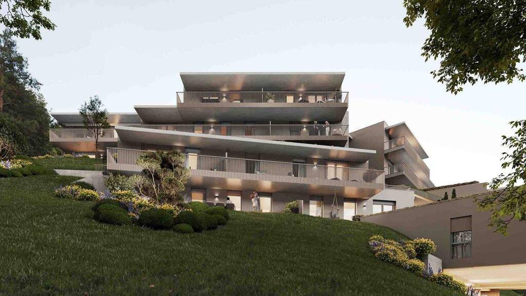 Das Projekt umfasst insgesamt 25 Wohnungen, die sich entlang des Hanges verteilen. Die Terrassen der Anlage garantieren einen wunderbaren Blick und sonnige Stunden. Alle Wohnungen sind mit Freiflächen in Form von Terrassen oder Balkonen ausgestattet. Der Baukörper passt sich an die umgebende Topografie an und ermöglicht so auch in den oberen Geschoßen private Gartenflächen. Die Anlage punktet mit Wohnkomfort und hoher Qualität der Ausstattung: Echtholz-Parkettböden im gesamten Wohnbereich sowie großformatige Fliesen in den Bädern und WCs. Wärmedämmende 3-Scheiben-Isolierverglasung, ausreichende Stromanschlüsse und ein Personenaufzug runden dieses Angebot ab. Hervorzuheben ist ebenfalls, dass das angewandte Heizungssystem auch in den Sommermonaten eine sanfte Kühlung über die Fußbodenheizung ermöglicht.