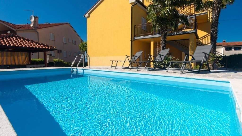 Njivice, ruhiger Bezirk, 350m von der Uferpromenade und den Stränden entfernt. Zum Verkauf steht eine wunderschöne, neu renovierte und komplett möblierte Wohnung in einem Gebäude mit 4 Wohneinheiten. Die Wohnung hat eine Fläche von 47m2 und besteht aus einem Flur, zwei Schlafzimmern, einem Badezimmer, einem Wohnraum und einer Küche mit Essbereich. Diese Wohnung verfügt über einen Nutzgarten, der auch einen schönen Swimmingpool und eine überdachte Terrasse mit Grillplatz umfasst. Zur Wohnung gehört auch ein eigener Balkon und ein Parkplatz im Garten. Das Gebäude und der Garten sind sehr gepflegt und möbliert, und auch die Wohnung ist von hoher Qualität möbliert.