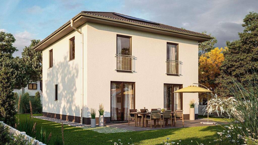 Die kubische Form ist der Klassiker im Stadthausdesign und prägt auch das Aussehen unseres Stadthaus Flair 124. Im Inneren setzt sich der urbane Stil fort: der großzügige Wohn- und Essbereich erstreckt sich über die gesamte Hausbreite und ist das Herzstück des Hauses. Große Fenster lassen viel Tageslicht hinein und führen gleich hinaus zu Ihrem Wohnzimmer im Grünen – der Terrasse.