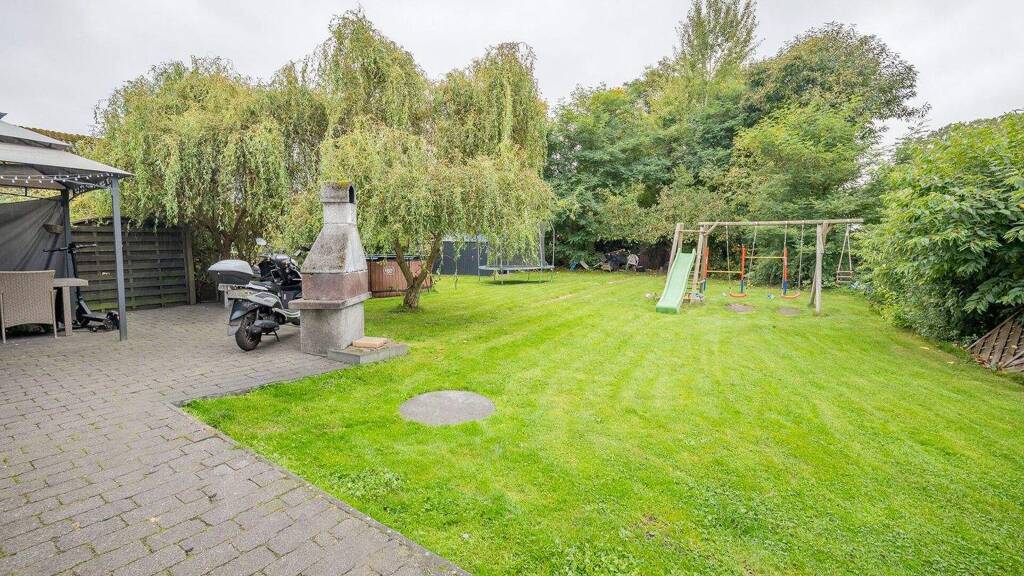 Die Wohneinheit in dem Doppelhaus aus dem Jahr 2020 bieten rund 125?m² Wohnfläche und einen funktionalen 4-Zimmer-Grundriss. Über den Eingang gelangt man in einen Flur mit Garderobennische, von dem aus ein Gäste-WC , ein Hauswirtschaftsraum und eine Abstellkammer unter der Treppe erreichbar sind. Der Wohnbereich mit offener Küche und direkten Zugang zum Garten.