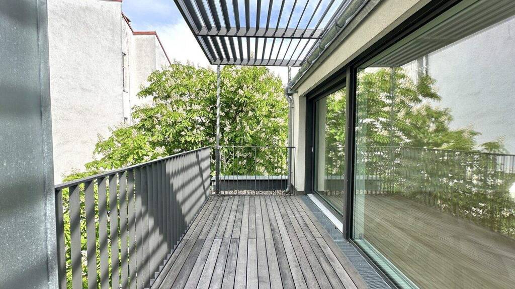 Wenn Sie nach unten schauen, liegt Ihnen die Stadt zu Füßen. Kopf hoch, und der Himmel über Wien ist zum Greifen nah. Genau so und nicht anders präsentiert sich dieses wunderbar angelegte Dachgeschoss mit all seinen Freiflächen. Hereinspaziert durch den einladenden Vorraum, mit viel Platz für Ihre Garderobe. Zur rechten Hand finden Sie das geräumige master bedroom mit en suite Badezimmer, ausgestattet mit Dusche, WC und Fenster, sowie den gemütlichen Lounge Bereich der Wohnung. Links rum erwartet Sie ein weiteres ca. 12 m² großes Schlafzimmer, ein zweites Badezimmer mit Dusche und das Gäste WC mit Handwaschbecken. Viel Platz für gemütliche Abende mit der Familie und Freunden finden Sie in dem etwa 37 Quadratmeter großen Koch- Essbereich. Ein großzügig integrierter Küchenbereich lässt die Herzen von Hobbyköchen mit Sicherheit höher schlagen. Vom Essbereich aus, gelangen Sie auf die 17 m² große Terrasse in Richtung Westen und all seinen begrünten Fassaden und Bäumen ringsum. Eine zweite, windgeschützte Terrasse komplettiert diese perfekte Wohnung im Erstbezug. So wohnt man gerne!