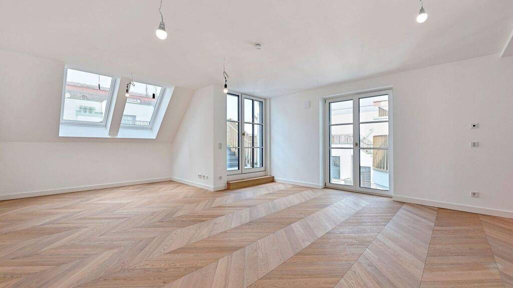 Der klimatisierte 2-Zimmer-Erstbezug befindet sich im 1. Dachgeschoß (entspricht dem 5. Obergeschoß) und verfügt über ca. 77 qm Wohnfläche sowie zwei Terrassen im Gesamtausmaß von ca. 40 qm.