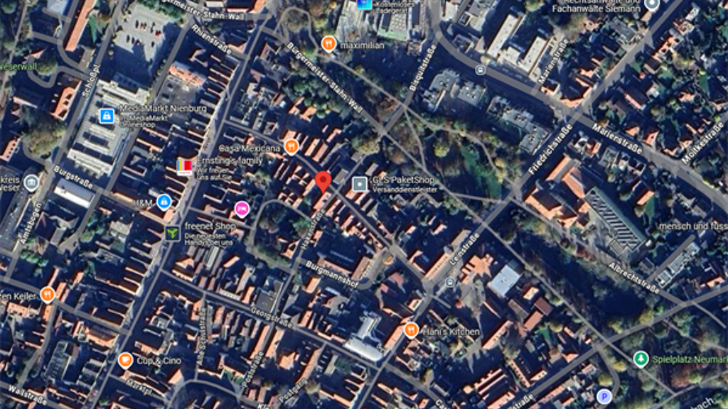 Die Immobilie befindet sich in zentraler Lage im Herzen von Nienburg (Weser). Dieser Standort überzeugt durch seine direkte Nähe zur Fußgängerzone, zahlreichen Einkaufsmöglichkeiten, gastronomischen Angeboten sowie kulturellen Einrichtungen. Alles, was das städtische Leben ausmacht, liegt nur wenige Gehminuten entfernt.