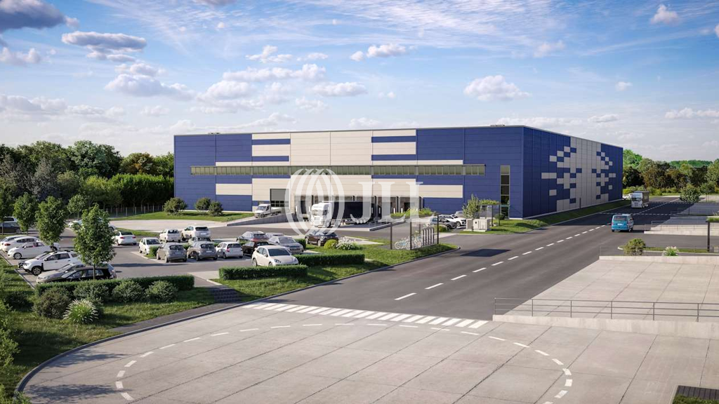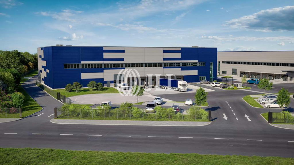 Die größere Gebäudeeinheit des Gewerbeparks ist bereits an ein namhaftes Unternehmen vermietet. Eine separate Single-Tenant-Unit steht noch zur Verfügung. Die verfügbare Einheit ist ein eigenständiges Gebäude, steht ausschließlich dem Nutzer zur Verfügung und bietet ca. 6.308 m² Hallenfläche, 534 m² Bürofläche sowie 464 m² Mezzaninefläche. Die Halle verfügt über insgesamt sechs Rampentore für die Andienung sowie ein ebenerdiges Tor. Die Hallenhöhe beträgt 12,20 Meter, die Bodentraglast liegt bei 7 t/m². Die Halle ist mit einer WGK-3-Folie ausgestattet. Die Beheizung erfolgt über eine Wärmepumpe, was zu einer energieeffizienten und zukunftssicheren Versorgung beiträgt. Das Gebäude wird nach modernsten Standards errichtet und erfüllt ein umfassendes Nachhaltigkeitskonzept.