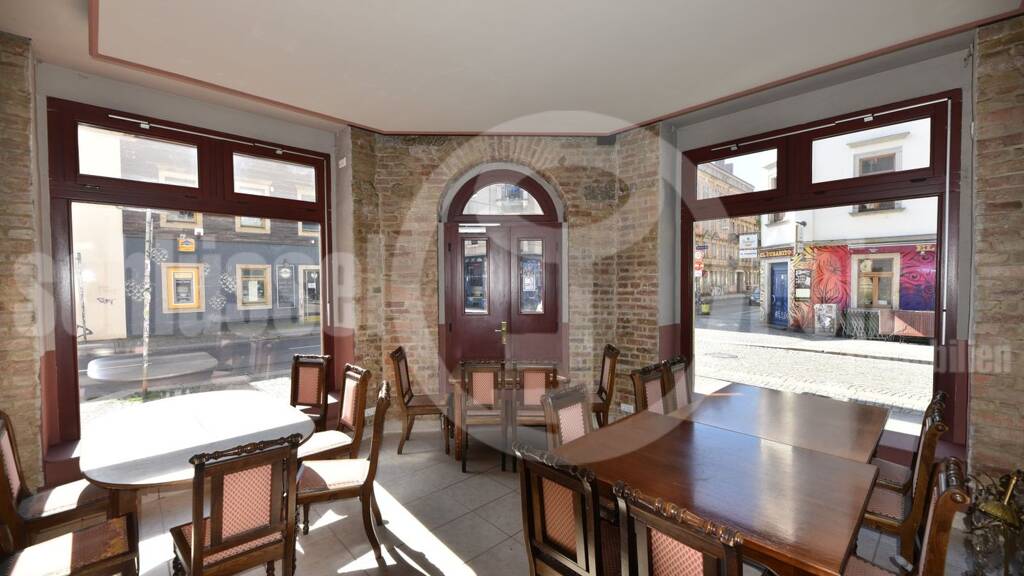*Restaurant mit Showküche, sichtbarem Mauerwerk und großen Fensterflächen am Alaunpark!*