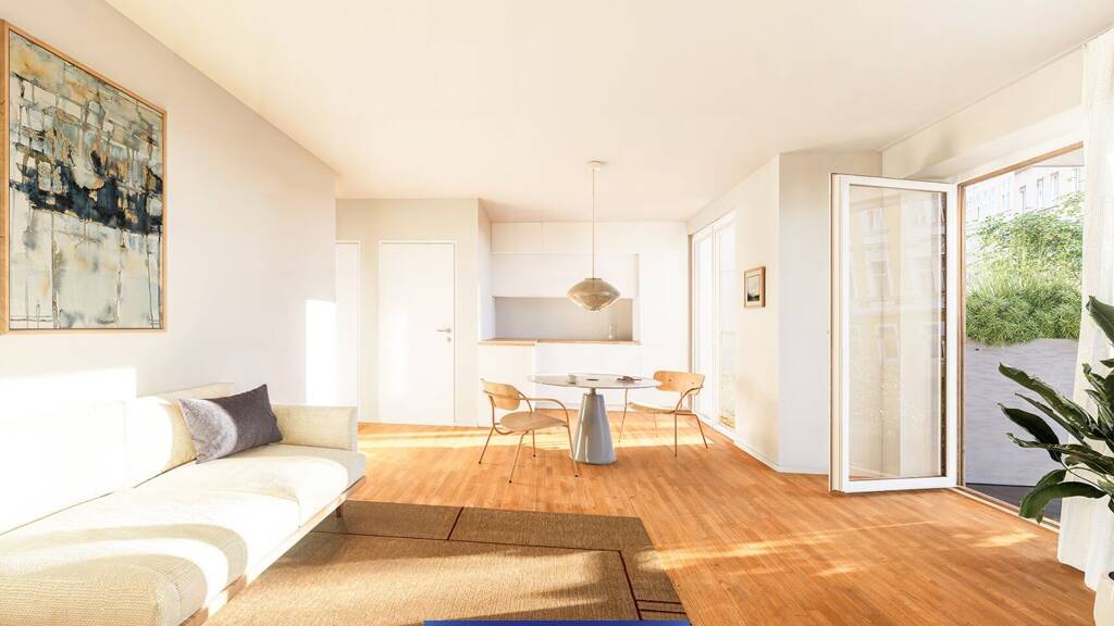 integrierten Pflanzentrögen. Zwei exklusive Maisonette- Wohnungen, eine davon mit Dachterrasse - großzügig gestaltet und mit atemberaubendem Blick über Wien. Jede Einheit überzeugt mit großzügigen Verglasungen, durchdachten Grundrissen und hochwertiger Materialwahl. Auch Nachhaltigkeit steht im Fokus: Eine Photovoltaikanlage und der Verzicht auf synthetische Dämmstoffe sorgen für ein angenehmes Wohnklima.