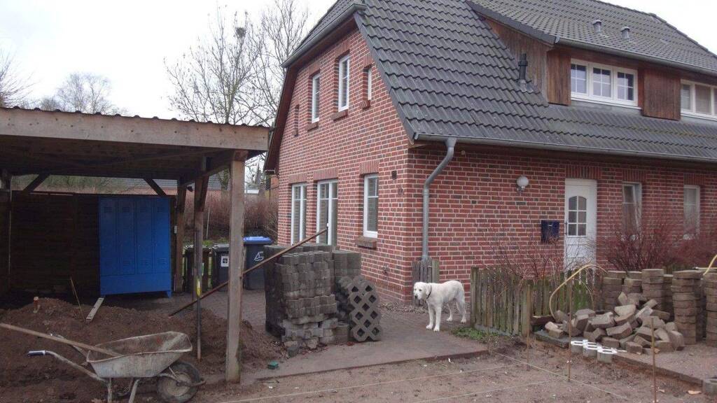 Derzeit wird der Eingangsbereich neu gestaltet, das heißt die Einfahrt wird vergrößert und neu gepflastert, daher einige Bilder als Baustelle.