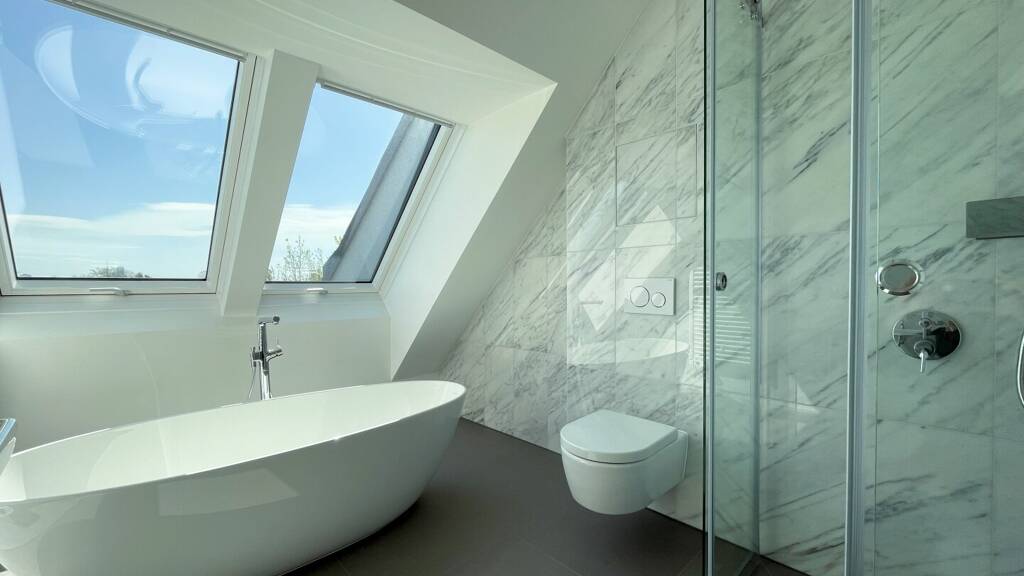* privates hochwertig ausgeführtes Bad mit freistehender Badewanne, Dusche WC und Handwaschbecken