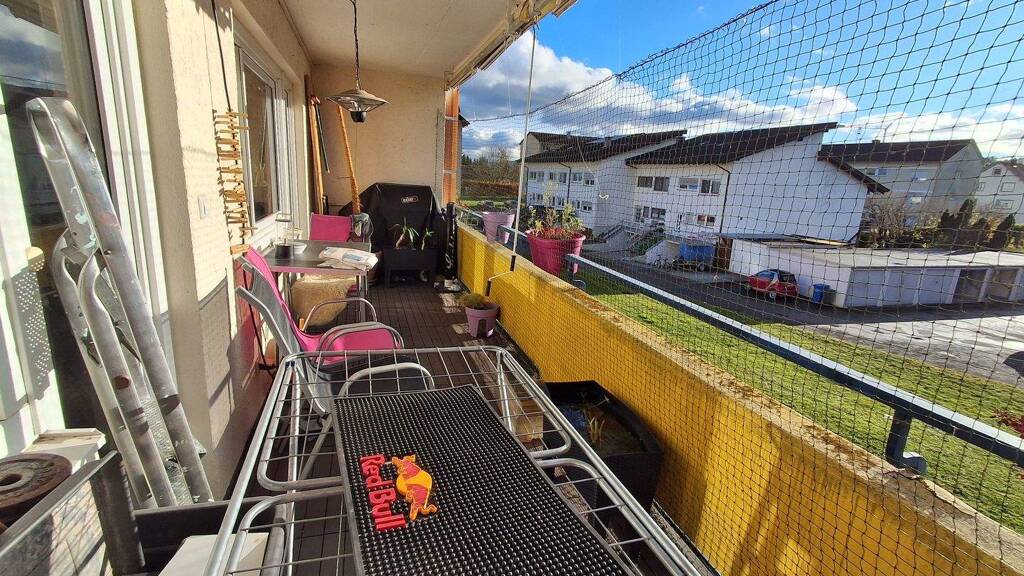 Zum Verkauf steht eine großzügige 4-Zimmer-Wohnung im 1. Obergeschoss eines gepflegten Mehrfamilienhauses mit insgesamt 12 Wohneinheiten, Baujahr 1970. Die Wohnung wurde 2003 umfassend renoviert und präsentiert sich in einem sehr gepflegten Zustand. Auf einer Wohnfläche von 98,2 m² bietet sie eine durchdachte Raumaufteilung mit zwei geräumigen Schlafzimmern, einem separaten Büro und einer gesonderten Küche. Das Badezimmer ist mit WC, Waschbecken, Badewanne und Dusche ausgestattet und überzeugt durch Funktionalität und Komfort. Zusätzlich steht ein separates Gäste-WC mit praktischem Waschmaschinenanschluss zur Verfügung, was den Alltag deutlich erleichtert. Vom Wohnzimmer sowie einem der Schlafzimmer gelangt man auf den überdachten Balkon, der nicht nur Schutz bei jedem Wetter bietet, sondern auch zu gemütlichen Stunden im Freien einlädt. Zur Wohnung gehört eine Einzelgarage sowie ein eigener Kellerraum, die zusätzlichen Stauraum bieten. Für die gemeinschaftliche Nutzung stehen ein Fahrradraum sowie ein Wasch- und Trockenraum zur Verfügung. Die Wohnung ist derzeit vermietet und stellt damit eine interessante Kapitalanlage dar. Die aktuelle monatliche Kaltmiete inkl. Garage beträgt 945€. Das gepflegte Umfeld des Mehrfamilienhauses sowie die durchdachte Aufteilung der Wohnung machen diese Immobilie sowohl für Eigennutzer als auch für Kapitalanleger attraktiv.