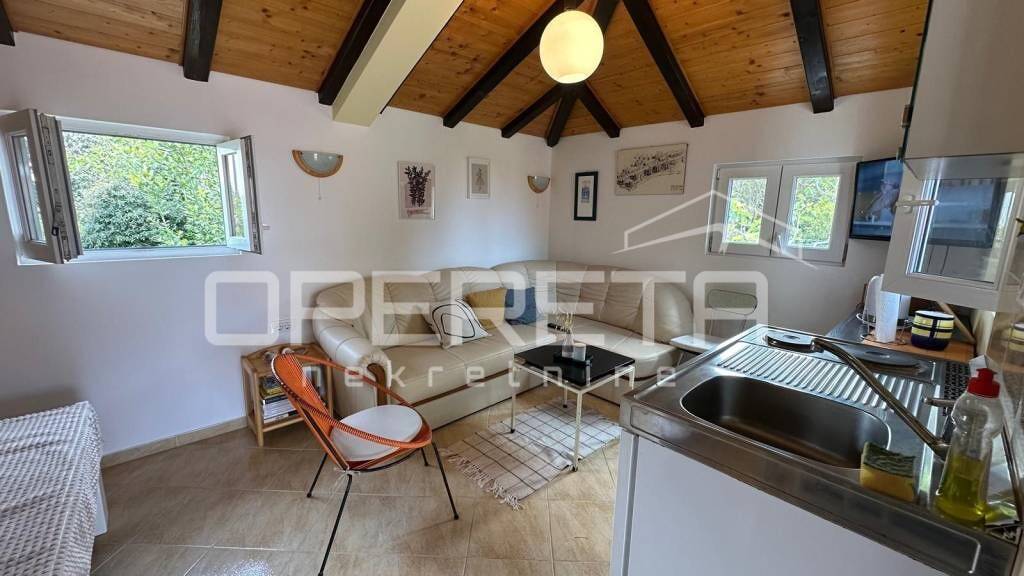 Nur wenige Schritte vom Meer entfernt, in der wunderschönen Jadrija, befindet sich dieses charmante Haus, das mediterranen Charme ausstrahlt und die perfekte Kombination aus Privatsphäre, Funktionalität und Nähe zu natürlichen Schönheiten bietet. Nur 40 Meter von der Küste entfernt, liegt das Haus in einer ruhigen, von Grün umgebenen Nachbarschaft.