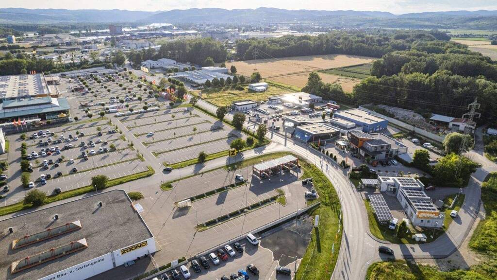Erdgeschoß: Holzriegelbau / Brucha Paneel Außenwand und KLH Sichtholz, Parkfläche auf Kundenebene für 18 PKW. Derzeitige Nutzung: Schauraum & Büroflächen.