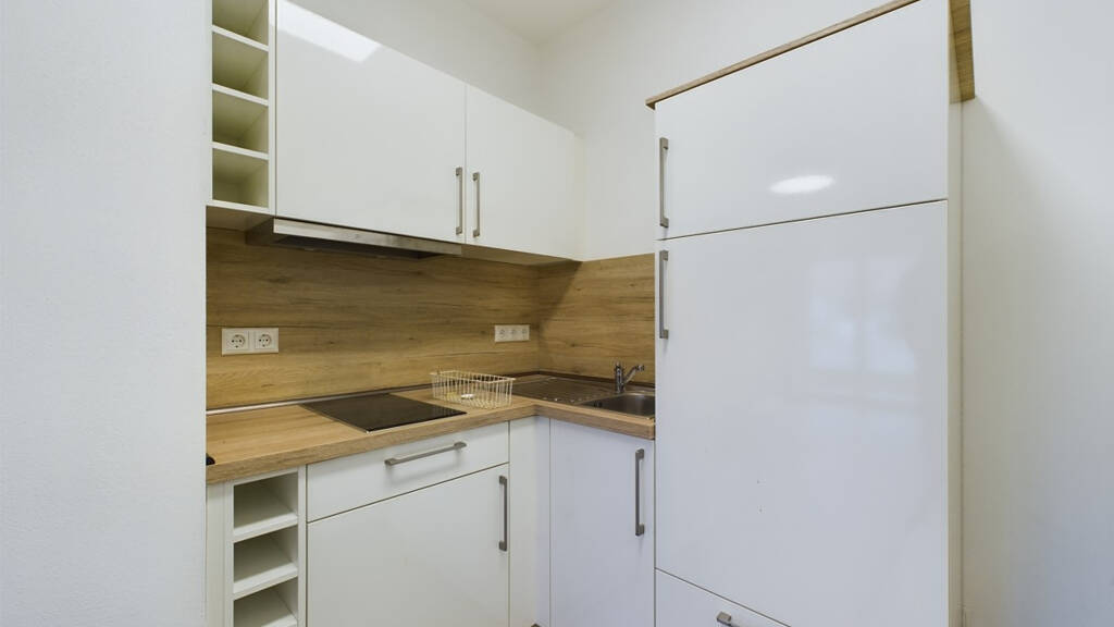 Die Wohnung bietet ein kombiniertes Wohn- und Esszimmer mit offener Küchenzeile sowie ein großzügiges, barrierefreies Badezimmer mit ebenerdiger Dusche und ein separates Schlafzimmer. Eine angrenzende Terrasse schafft zusätzlichen Raum im Freien und macht die Wohnung auch für Einzelpersonen oder Senioren besonders attraktiv. Ein PKW-Stellplatz gehört ebenfalls zur Einheit.