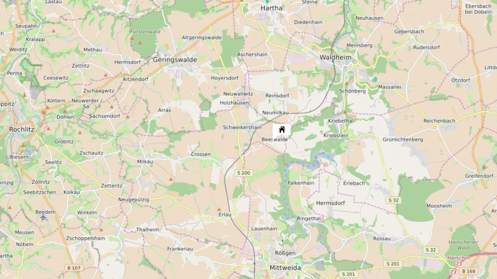 Das Grundstück liegt in der Gemeinde Erlau, nordwestlich ca. 8km entfernt von der Hochschulstadt Mittweida. Die am schönen Zschopautal gelegene Gemeinde zählt ca. 3.500 Einwohner, bis zur Talsperre Kriebstein sind es nur wenige Autominuten. Der Ort Erlau verfügt über eine ausgezeichnete Infrastruktur. Kindereinrichtung, Grundschule, Einkaufsmöglichkeiten und öffentliche Verkehrsmittel können Sie zu Fuß erreichen. Der Ort Erlau ist geprägt von ruhiger Lage in grüner Umgebung und weiträumiger Bebauung. Entlang der Zschopau und nahe der Talsperre Kriebstein laden viele Wander- und Radwege zur Erholung ein. Die zentrale Lage im Herzen des Sachsendreiecks Chemnitz-Dresden-Leipzig und die günstige Verkehrsanbindung an die Bundesstraße BAB 4 und BAB 14 ermöglicht eine sehr gute Erreichbarkeit aus allen Richtungen. Chemnitz ist in ca. 30 Autominuten erreichbar. Die Städte Mittweida, Rochlitz, Waldheim und Geringswalde sind gut mit Bus oder eigenem Fahrzeug erreichbar.