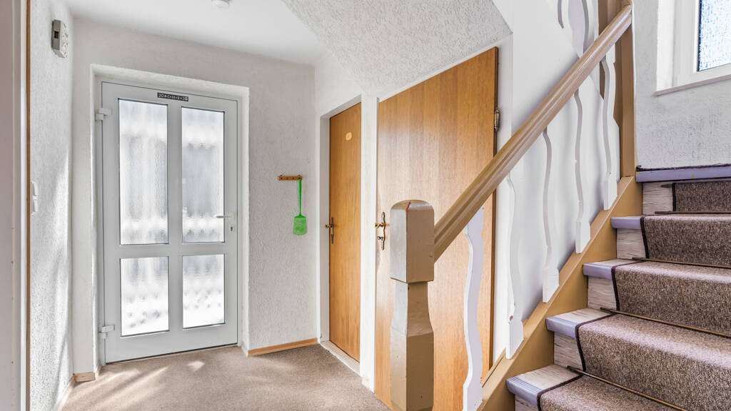 Das Haus verfügt über Teppich-, Laminat- und Fliesenböden, ein Gäste-WC sowie einen großzügigen Keller mit viel Stauraum. Im Obergeschoss finden sich drei geräumige Schlafräume, die zum Erholen und Wohlfühlen einladen.