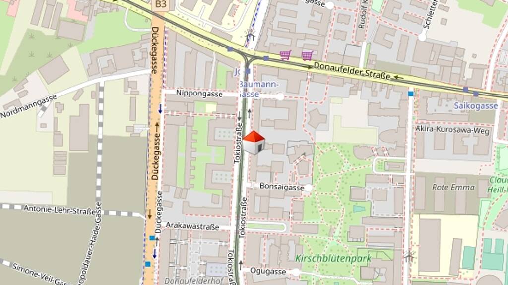 Zahlreiche Ärzte, Supermärkte, eine Apotheke, ein Eissalon, eine Pizzeria und ein Chinese befinden sich ebenso in der unmittelbaren Umgebung. Eine Volksschule ist fussläufig erreichbar. Der Kirschblütenpark und die Albert Schultz-Eishalle laden zum Entspannen und zu sportlichen Aktivitäten.
