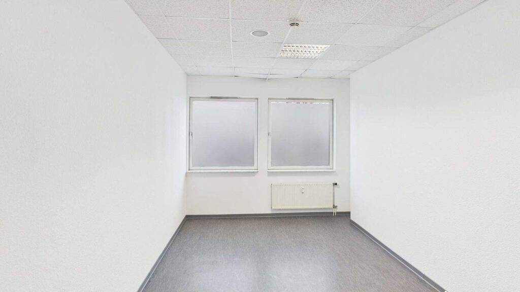 Bereits beim Betreten der Fläche gelangt man in einen zentral angelegten Flurbereich, von dem aus alle Räume übersichtlich erreichbar sind. Diese klare Struktur sorgt für eine angenehme Orientierung innerhalb der Gewerbeeinheit und ermöglicht eine effiziente Organisation von Arbeitsabläufen.