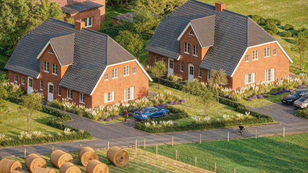 Die Häuser werden provisionsfrei für den Käufer angeboten. Die Grundstücksfläche je Doppelhaus beträgt ca. 921 m² und rund 854 m².