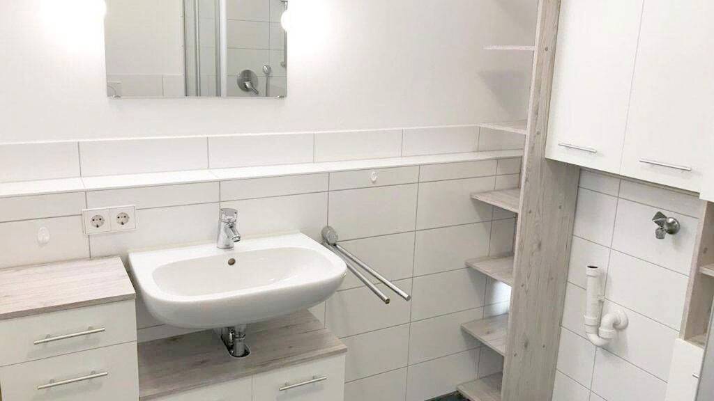 2 helle Zimmer separate Küche mit Einbauküche (Geschirrspülmaschine) Bad mit Dusche Fliesenböden mit Fußbodenheizung Keller Gemeinsamer Fahrradraum Autostellplatz