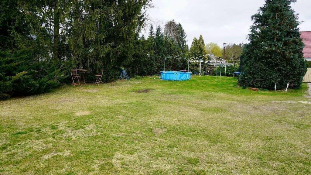 Auf einem ca. 620 m² großen Teilstück des Grundstücks befindet sich zudem eine um 1930 erbaute Doppelhaushälfte mit einer Wohnfläche von rund 131 m². Diese verteilt sich auf insgesamt sechs Zimmer, zwei Bäder, eine Küche sowie einen unausgebauten Dachboden. Das Haus ist teilweise unterkellert und wird durch eine Gasheizung beheizt, die im Oktober 1994 von der Firma W.R. Jeske eingebaut und seither regelmäßig gewartet wurde. Die letzte Wartungsrechnung datiert aus dem Jahr 2024. Das Dach wurde im September 1995 neu eingedeckt. Zum Bestand gehören außerdem ein Gartenhaus und zwei Garagen.