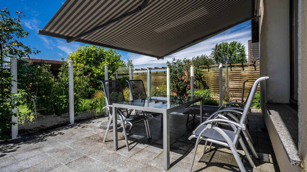 Ein besonderes Highlight ist die XXL Terrasse welche mit einer Markise und Glaselementen als Windschutz ausgestattet ist. Sie bietet viel Platz für gemütliche Stunden im Freien und es besteht auch die Möglichkeit einen Wintergarten zu errichten und somit zusätzlichen Wohnraum zu schaffen.