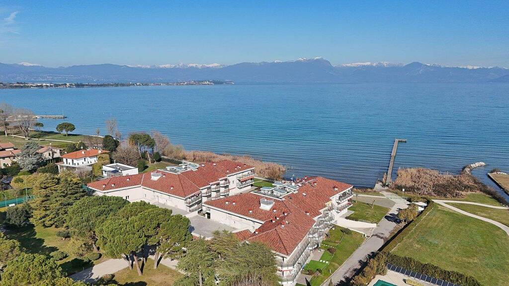 Die Wohnanlage bietet zahlreiche exklusive Dienstleistungen: einen privaten Steg am See zur Anlegemöglichkeit kleiner Boote oder um atemberaubende Sonnenuntergänge zu genießen, einen Spielplatz für Kinder inmitten von Grünflächen, einen gepflegten Gemeinschaftspark sowie direkten Zugang zum Privatstrand – ideale Lösungen sowohl für Bewohner als auch anspruchsvolle Touristen - alles betreut vom Hausmeister der Anlage. Das Angebot wird durch eine großzügige Doppelgarage inkludiert, die im Preis enthalten ist. Alle wichtigen Dienstleistungen sind bequem zu Fuß erreichbar einschließlich Lebensmittelgeschäfte, Apotheke, Bars und typischen lokalen Restaurants sowie den berühmten Thermen Aquaria nur wenige Minuten entfernt. Über die Promenade und den Radweg entlang des Sees erreicht man direkt vom privaten Garten aus verschiedene umliegende Strände wie Punta Grò und Lido Galeazzi oder das historische Zentrum von Sirmione in wenigen Minuten.
