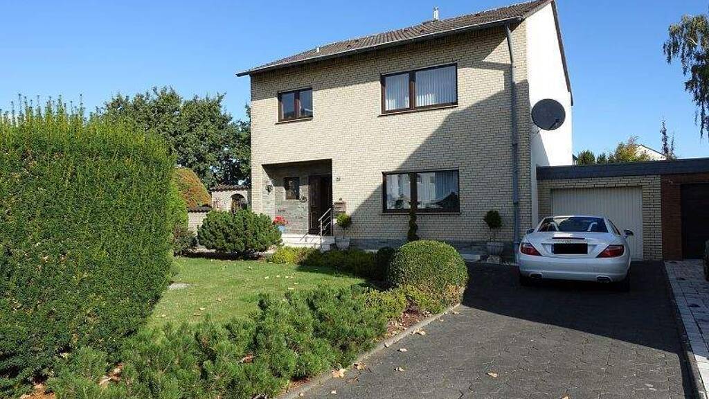 Baujahr 1969, auf großzügigem, geschmackvoll bepflanztem Eckgrundstück. Das Wohnhaus ist bis auf eine Ausnahme mit doppelverglasten Kunststoff-Fenstern von 1992 bis 1995 ausgestattet und wird über eine Viesmann Gaszentralheizung aus dem Jahr 2003 beheizt. Das Wohnhaus wurde in Massiv-‚Bauweise mit Betondecken errichtet. Die Wohnräume sind mit Teppichboden ausgestattet, Gäste-WC und Bad sind gefliest.