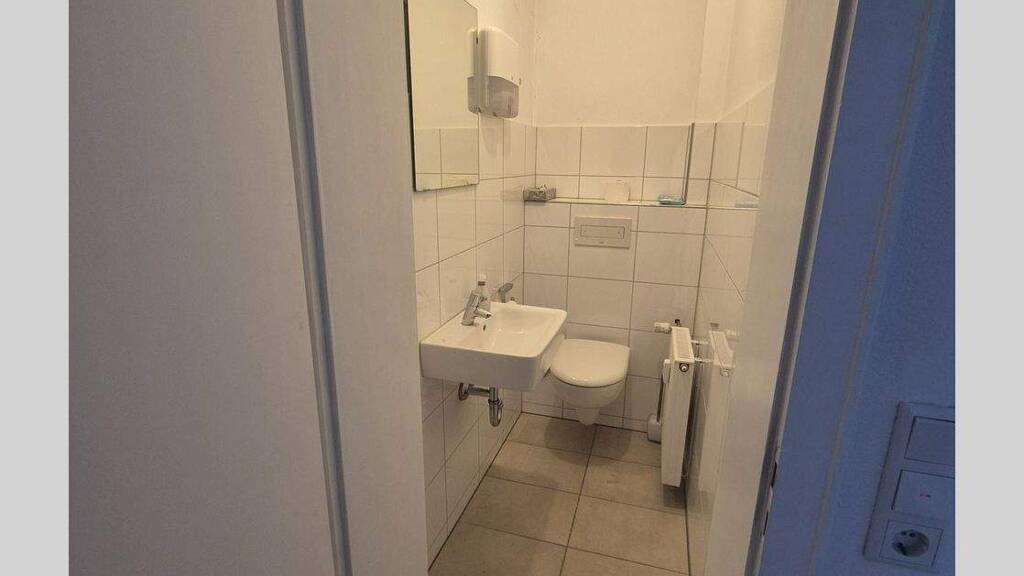 Die Gewerbeeinheit umfasst eine großzügige Fläche, die sich ideal für eine Vielzahl von Nutzungsmöglichkeiten eignet, sei es als Ladenlokal, Büro oder Praxis. Die Einheit ist sehr gut geschnitten und in einem sehr gepflegten Zustand. Sie besteht aus einem einladenden Eingangsbereich mit Empfang und WC sowie einem großen, lichtdurchfluteten Hauptraum, der durch große Fensterflächen eine angenehme Atmosphäre schafft. Vom Hauptraum genießen Sie einen herrlichen Blick auf städtische Grünanlagen, was eine ruhige und entspannte Arbeitsumgebung bietet.
