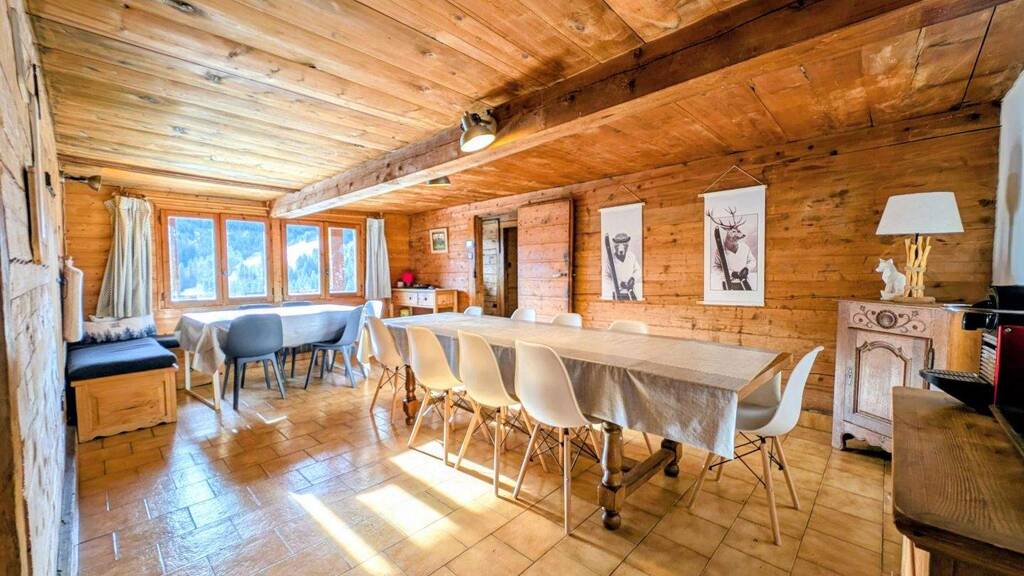 Recently renovated with noble materials, the chalet's unique interior design creates generous volumes and spacious living areas, blending rustic charm with contemporary comfort.