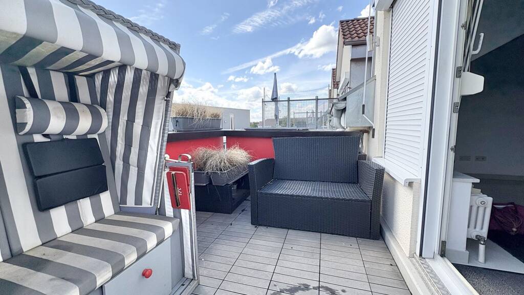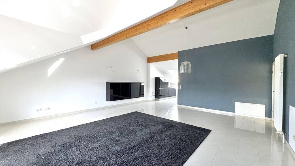 Die Wohnung im Dachgeschoss beeindruckt durch helle Räume mit hohen Wänden, eine moderne Raumaufteilung sowie durch ihre durchdachte Architektur, die sowohl praktische als auch ästhetische Anforderungen erfüllt. Viele Fensterflächen sorgen für eine ausgezeichnete Belichtung und unterstreichen das freundliche und einladende Ambiente.