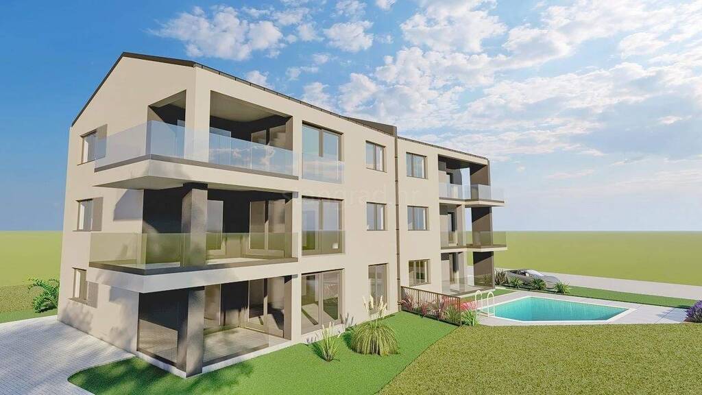Die Wohnung befindet sich in einem modernen Gebäude und erstreckt sich über das 1. Obergeschoss. Die Gesamtfläche beträgt 73 m² und umfasst einen Eingangsbereich, Wohnzimmer mit Küche, 2 Schlafzimmer, Badezimmer, separates WC und eine großzügige Terrasse. Ein zusätzlicher Mehrwert ist der Gartenbereich, der einen Gemeinschaftspool für alle Miteigentümer beherbergen wird. Der Wohnungseigentümer hat zudem einen Stellplatz zur Verfügung.