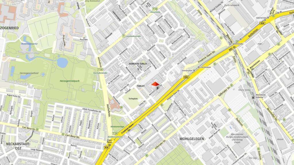 Die Liegenschaft befindet sich im Turley-Areal, einem der innovativsten und dynamischsten Stadtentwicklungsprojekte Mannheims. Das ehemalige Kasernengelände wurde in den letzten Jahren in ein modernes, gemischt genutztes Stadtquartier transformiert und steht heute exemplarisch für zukunftsweisenden Städtebau, urbane Vielfalt sowie die gelungene Verbindung von Arbeiten, Wohnen und Leben.