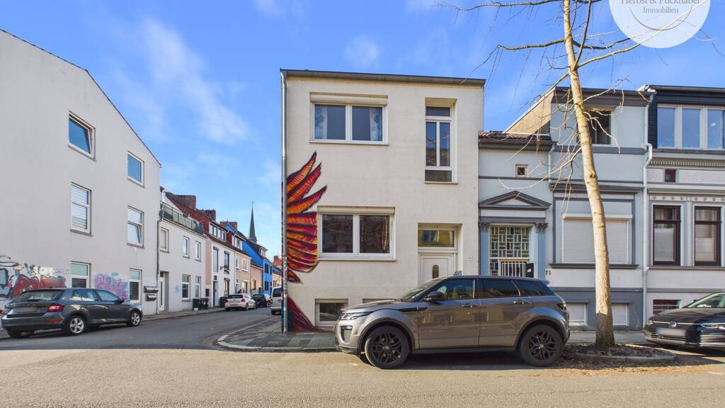 Die Umgebung ist geprägt von klassischen Bremer Altbauten, charmanten Reihenhäusern und kleinen Wohnstraßen. Zahlreiche Einkaufsmöglichkeiten für den täglichen Bedarf, Bäckereien, Cafés und Restaurants befinden sich in unmittelbarer Nähe und sind bequem fußläufig erreichbar. Auch Ärzte, Apotheken sowie verschiedene Dienstleister sind im Umfeld angesiedelt und sorgen für eine sehr gute Nahversorgung.