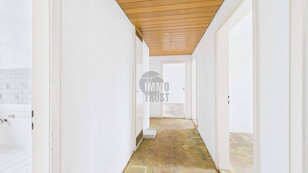 Auf ca. 81 m² Wohnfläche stehen vier großzügig geschnittene Zimmer zur Verfügung, darunter drei Schlafzimmer, die sich flexibel als Kinder-, Gäste- oder Arbeitszimmer nutzen lassen. Das Tageslichtbad sorgt für ein angenehmes Raumgefühl, ergänzt durch ein separates WC - ein echter Komfortvorteil im Alltag. Ein geräumiger Flur mit praktischer Abstellkammer bietet zusätzlichen Stauraum und unterstreicht die Familienfreundlichkeit dieser Wohnung.