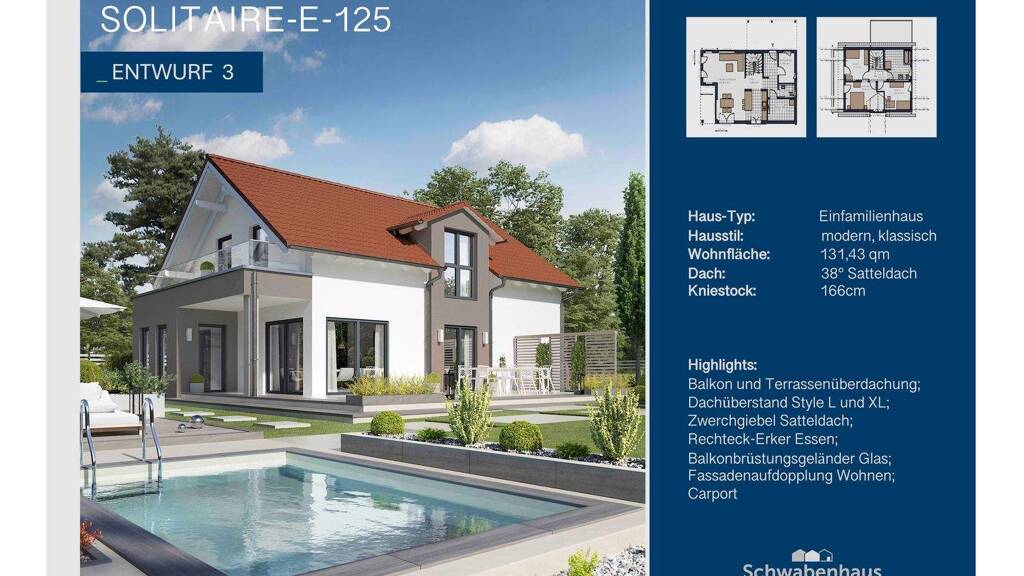 - Bodenplatte inkl. Effizienzhaus 55 Perimeter-Dämmung unterhalb der Bodenplatte sowie stirnseitig - Klima-Komfort-Bauweise für das Effizienzhaus 55 - Zimmermannsmäßiges Pfettendach - Photovoltaik-Vorbereitung für die Ausführung eines Photovoltaik-Systems - Komplette Elektro-, Sanitär- und Heizungs-Installation inkl. Grundinstallation für das Schwabenhaus auf Schwabenhaus-Bodenplatte bzw. -Keller* - Zukunftsweisende Elektro-Installation* - Abgeschirmte Lichtleitungen für moderne, störungsfreie Beleuchtung und Lichtszenarien - Rollläden im Erd- und Obergeschoss Ihres Schwabenhauses - Doppel-Wärmepumpe Eco* für Heizen, Kühlen, Lüften, Luftreinigung und Warmwasser - Schwimmender Estrich mit Wärmedämmung* - Blower-Door Test zur Überprüfung der Luftwechselrate* - Klima-Komfort-Außenwand mit über 200 Putzfarben zur Auswahl - Hochwertige, mehrschichtige Holz-Haustür in vielfältigen Design-Lösungen, mit Sicherheitsschließzylinder, 5-fach- Sicherheits-Verriegelung und 3-Scheiben-Wärmeschutzverglasung - Kunststoff-Fenster mit 3-Scheiben- Wärmeschutzverglasung - Dachflächenfenster mit Kipp- und Schwingfunktion sowie elektrischen Rollläden*, wenn laut Grundriss enthalten - Außenfensterbänke aus Naturstein - Innenfensterbänke aus Kunst- oder Naturstein* - Massiv-Vollholz-Treppe - Protect Versicherungs-Paket mit Wohngebäude-Versicherung inkl. Elementarschutz, Haus- und Wohnungs-Schutzbrief, Bauleistungs-Versicherung und Bauherren-Haftpflichtversicherung sowie Job-Protect Versicherungs-Paket - 10 sowie 30 Jahre Gewährleistung gemäß Definition in der Schwabenhaus Bau- und Leistungsbeschreibung