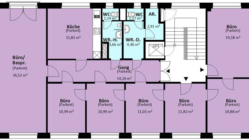 Bei diesem Objekt handelt es sich um ein modernes Büro auf einer Etage in einem topgepflegtem Haus direkt im Sievering. Büro mit ca. 159 m² hat drei separaten Eingänge. Insgesamt besteht die Einheit aus 7 Büroräumen wovon 6 Räume getrennt begehbar sind. Büroräume sind von 11 m² bis 39 m² groß, hell und sonnig ausgerichtet. Büroräume sind mit EDV (KAT7) Verkabelung ausgestattet. Mitarbeiterküche, getrennte Sanitäranlagen sowie ein Abstellraum inkl. Serverplatz sind vorhanden. Bürogebäude wurde im Jahr 2010/2011 generalsaniert und sämtliche Anforderungen eines modernen Bürogebäudes erfüllt. Das Büro verfügt über Holz- Alu Isolierglasfenster, Parkettboden, Außenbeschattung, Klimageräte in allen Räumen sowie eine Alarmanlage. Stellplatz im Hofbereich sowie ein großzügige Lagerfläche im Keller mit zu 10m² können extra angemietet werden.