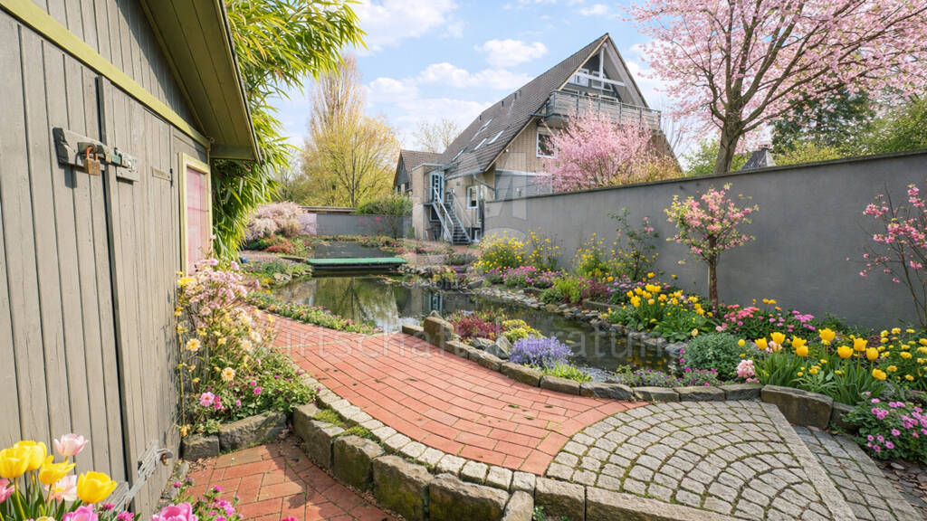 7. Eine schöner Garten mit einer außergewöhnlichen Teichanlage.
