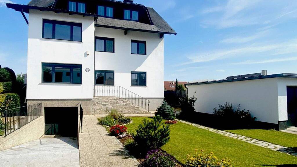 Die Zimmer sind mit Parkettböden, exklusiven Fliesen, LED Beleuchtung sowie Massivholztüren ausgestattet. Der Dachboden wäre noch ausbaubar. Das gesamte Haus wird über eine neuwertige Gaskombitherme beheizt und im Wohnsalon ist eine Klimatisierung installiert. In der Garage, welche direkt vom Haus begehbar ist und sich ein PKW- Stellplatz befindet sowie eine Sauna, ein Wirtschaftsraum die Technikzentrale und ausreichend Stauraum für die Familie. Eine weitere Garage mit Montagegrube ist an der Grundgrenze angeordnet. Von den oberen Zimmern genießen Sie einen herrlichen Rundumblick auf die Voralpen.