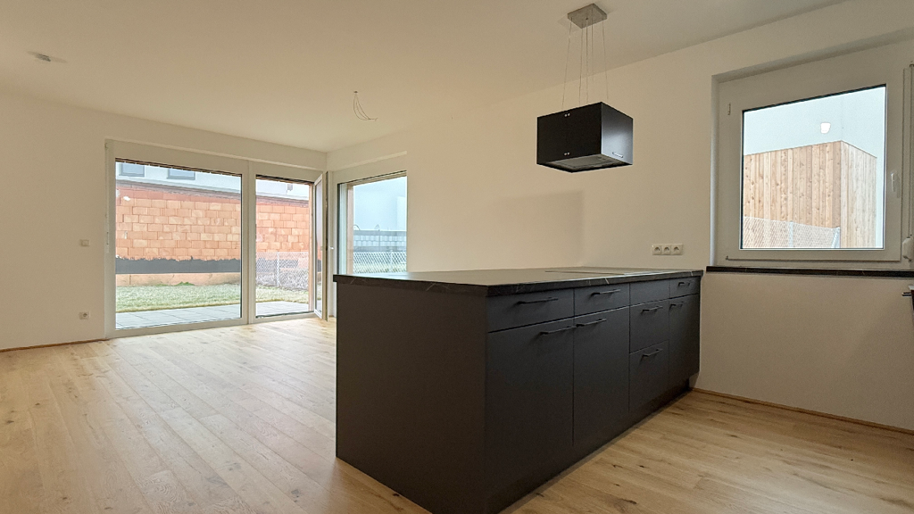 Großzügige 3-fach-verglaste Fensterflächen und eine Raumhöhe von ca. 2,60 m schaffen in allen Räumen ein helles, freies Wohngefühl. Der südlich bzw. südwestlich ausgerichtete Garten von ca. 100,20 m² garantiert viele Sonnenstunden und lädt zum Verweilen ein. Dank der leicht versetzten Bauweise bleibt eure Privatsphäre im Garten gewahrt. Die Ziegelmassivbauweise mit effizienter Wärmedämmfassade sorgt zu jeder Jahreszeit für ein angenehmes Raumklima. Eine Wärmepumpe mit Fußbodenheizung ermöglicht wohltuende, energieeffiziente Wärme an kalten Tagen. Das Haus wird schlüsselfertig inklusive Küche samt Blaupunkt-Geräten übergeben