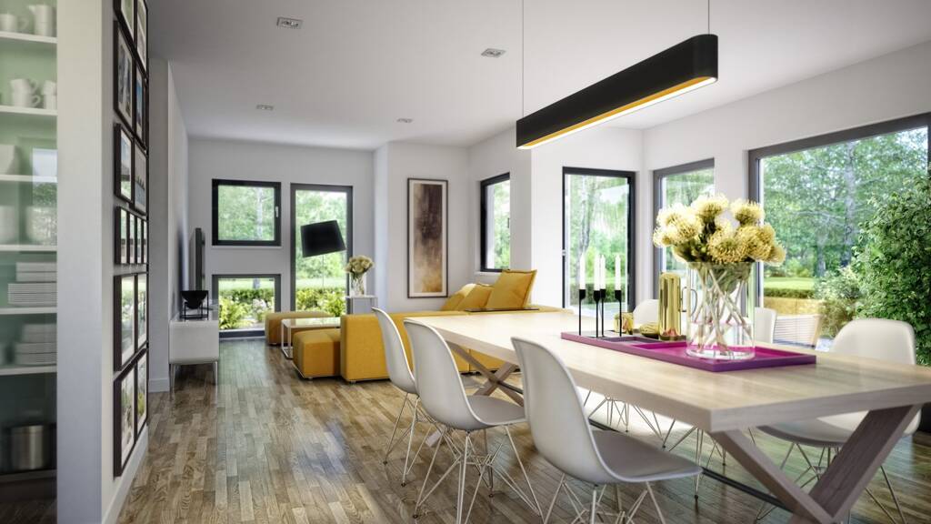Das LivingHaus in Griesheim ist mehr als nur ein Ort zum Wohnen - es ist ein Zuhause, das nach deinen Vorstellungen und Wünschen projektiert wird. Mit einer großzügigen Wohnfläche von 124 m² auf einem 440 m² großen Grundstück bietet es genügend Raum für deine individuelle Lebensgestaltung. Das klassische Satteldach mit 38 Grad Neigung verleiht dem Haus eine zeitlose Eleganz. Die bodentiefen Fenster fluten deine Räume mit Licht und schaffen eine harmonische Verbindung zur Natur.