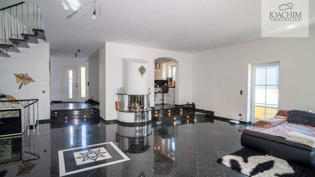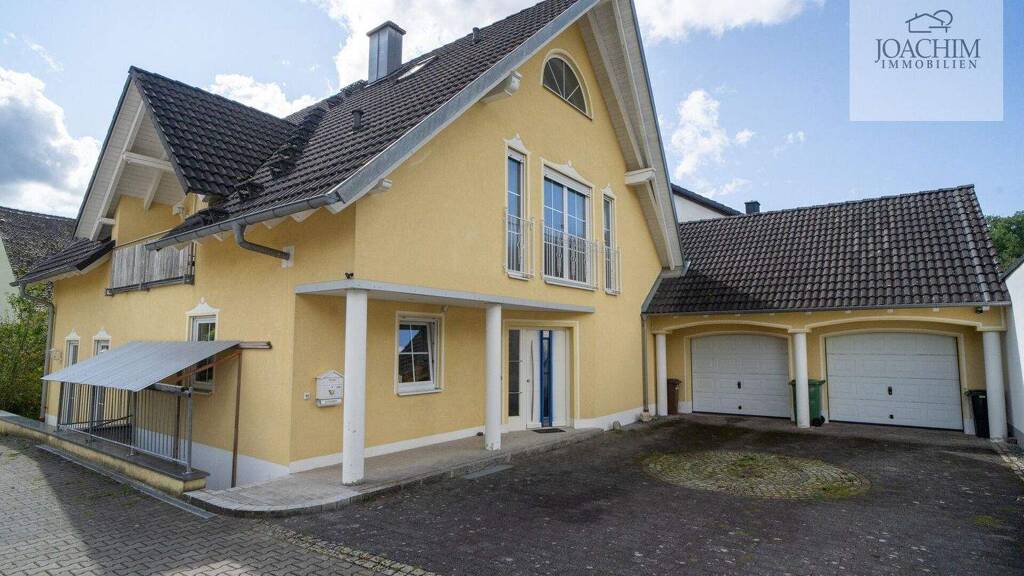 Zum Verkauf steht ein außergewöhnliches Einfamilienhaus aus dem Baujahr 1999 mit einer Gesamtwohnfläche von ca. 210 m² sowie zusätzlich ca. 83 m² Nutzfläche im Kellergeschoss. Die Immobilie überzeugt durch ihre Großzügigkeit, eine besondere Architektur und Ausstattungsdetails, die man in dieser Form nur selten findet. Das Herzstück des Hauses bildet der offen gestaltete Wohn- und Essbereich mit ca. 68 m². Der Kamin sorgt für eine warme, repräsentative Atmosphäre und unterstreicht das beeindruckende Raumgefühl. Die hochwertige Einbauküche ist im Kaufpreis enthalten. Ergänzt wird das Erdgeschoss durch ein separates Gäste-WC, eine Speisekammer sowie einen offen gestalteten Flur. Erd- und Obergeschoss verfügen über durchgehenden Natursteinen und sind über eine hochwertige Treppe miteinander verbunden. Im Obergeschoss befindet sich ein ca. 31 m² großes Tageslichtbad mit Whirlpool-Badewanne und echtem Spa-Charakter. Zudem stehen zwei Räume mit Balkonzugang zur Verfügung. Ein Zimmer eignet sich ideal als Schlaf-, Kinder- oder Arbeitszimmer. Der zweite Raum ist als exklusive Ankleide mit zwei begehbaren Kleiderschränken konzipiert und über eine elegante Wendeltreppe mit dem ausgebauten Dachgeschoss verbunden, in dem sich ein weiterer Schlafbereich befindet. Dieses besondere Raumkonzept verleiht dem Haus einen außergewöhnlichen, fast märchenhaften Charakter. Das Dachgeschoss ist mit Teppichboden ausgestattet. Das Kellergeschoss bietet ca. 83 m² Nutzfläche mit drei großzügigen Räumen, einem Bad mit Duschwanne, einem Heizungsraum sowie einem Flur. Die Böden sind gefliest. Ein Raum eignet sich aufgrund vorhandener Anschlüsse ideal für eine mögliche Einliegerwohnung. Ein separater Außenzugang ist vorhanden. Beheizt wird das Haus über eine Ölzentralheizung (Brenner erneuert 2023) in Kombination mit Fußbodenheizung im ganzen Haus. Nur das ausgebaute Dachgeschoss ist ohne Fußbodenheizung ausgestattet. Zum Objekt gehören eine großzügige Doppelgarage mit elektrischem Tor, zusätzliche Stellplätze sowie ein schöner Garten mit Terrasse. Das Grundstück ist 433 Quadratmeter groß plus einen 1/2 Miteigentumsanteil an der Auffahrt mit anteilig 195 Quadratmetern.