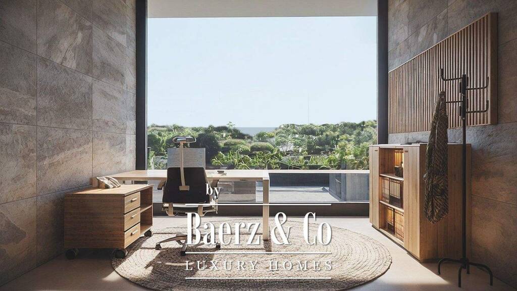 the upper level hosts the most private areas of the home. it includes two double bedrooms with walk-in wardrobes and en-suite bathrooms, a fitness room, and an impressive 34 m² master suite featuring a walk-in wardrobe, private bathroom and open views towards the surrounding pine forest, creating a calm and natural atmosphere.