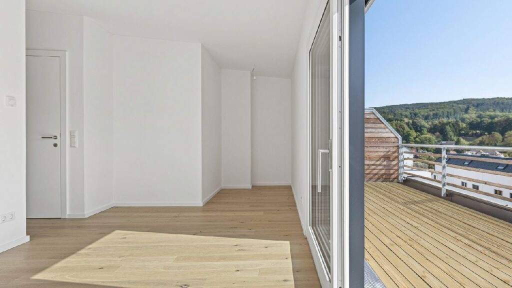 Ausstattung: Elegante Parkettböden in allen Wohn- und Schlafräumen Weiße, matte Innentüren mit Holzzarge bzw. Glastüren Großzügige Terrasse im Erdgeschoß mit Kaltwasseranschluss und Außenbeleuchtung Dachterrasse mit beeindruckender Aussicht Großformatige Fliesen (60 × 60 cm) in den Sanitärbereichen Badewannen mit Markenarmaturen und bodenbündige Duschen Vollständige Ausstattung aller Häuser mit Raffstores