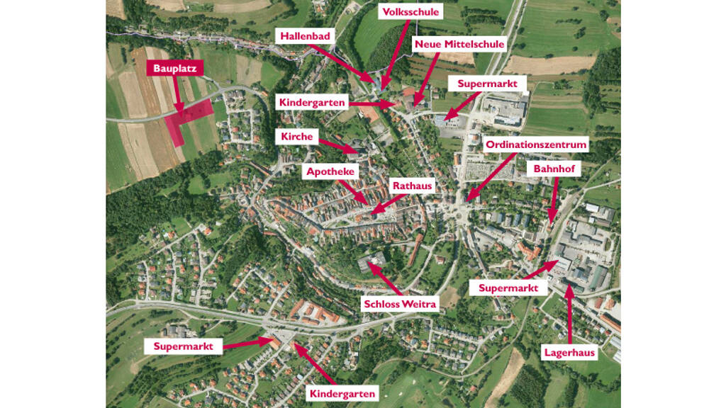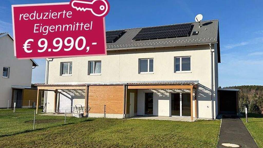 Insgesamt wurden in Weitra 14 neue Reihenhäuser gebaut. Die Häuser wurden in Fertigteilbauweise mittels Holzrahmenelementen ausgeführt und sind technisch top ausgestattet. Neben einer Photovoltaikanlage punkten die Häuser mit einer kontrollierten Wohnraumlüftung mit Wärmerückgewinnung und elektrisch gesteuerten Außenraffstores. Als Heizung dient eine moderne Luft/Wasserwärmepumpe mit Fußbodenheizung. Die zweigeschoßigen Bauten überzeugen durch einen ansprechenden, familienfreundlichen Grundriss, der durch den offenen und lichtdurchfluteten Schnitt und die im Erdgeschoß sichtbare Massivholzdecke sehr freundlich und einladend wirkt. Die Reihenhäuser wurden in Niedrigenergiebauweise errichtet, was zur Folge hat, dass die Energie- und Betriebskosten niedrig gehalten werden können. Alle Reihenhäuser verfügen über einen eigenen Garten mit Terrasse, Außenabstellraum und ein Carport mit zwei Stellplätzen.