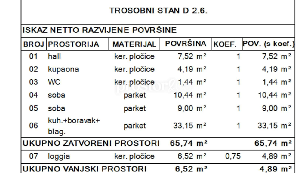 ur Vermietung steht eine komplett neue, noch nie bewohnte Wohnung mit 65,94 m² und einer Loggia von 4,95 m² im 2. Stock eines modernen Neubaus in der Straße Baruna Filipovica.
