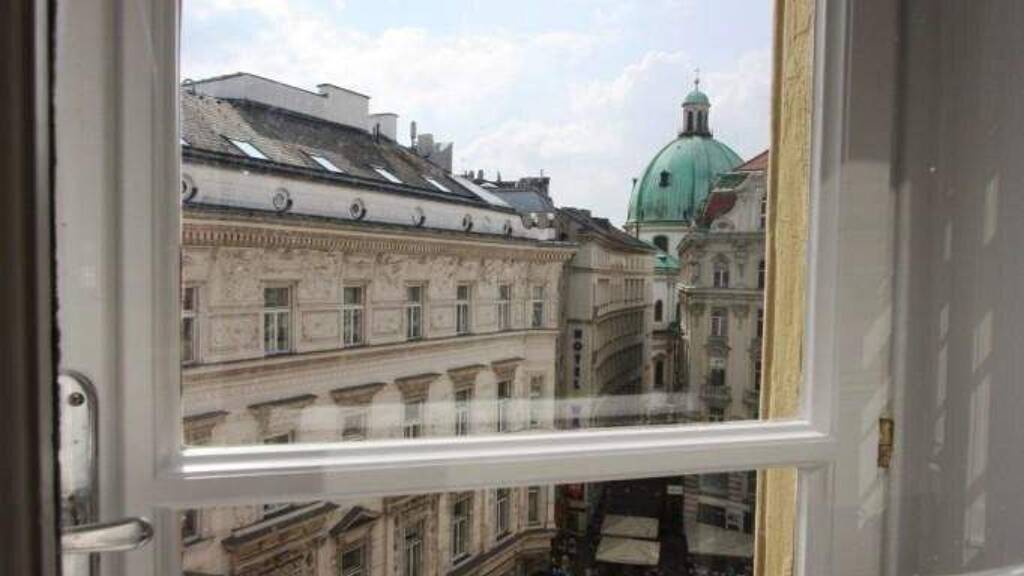 * Vorzimmer * voll ausgestattete Küche * Bad mit Dusche, Wanne, Doppelwaschbecken und Fenster * Bad 2 mit Dusche * Esszimmer * Wohnsalon mit Sternparkettböden und Ausblick Richtung Peters Kirche * Zimmer * Zimmer * Zimmer * Toilette