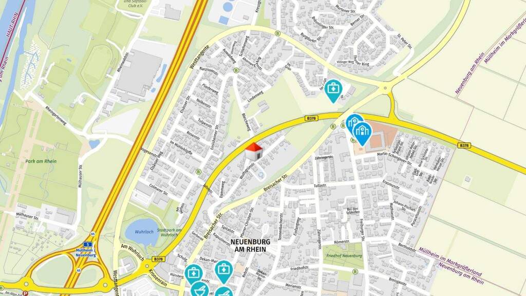 Die Immobilie befindet sich in einer attraktiven Lage in Neuenburg am Rhein, die sowohl durch ihre gute Infrastruktur als auch durch ihre Nähe zu verschiedenen Freizeitmöglichkeiten besticht. In unmittelbarer Umgebung finden sich zahlreiche Annehmlichkeiten, die den Alltag erleichtern und bereichern.