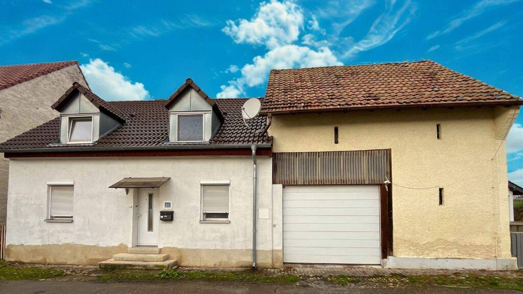 Dieses umfassend sanierte Wohnhaus aus ca. 1900 vereint historischen Charme mit modernem Wohnkomfort auf rund 106 m² Wohnfläche. Auf dem großzügigen Grundstück erwartet Sie zudem eine geräumige Scheune, die vielseitiges Potenzial für Ausbau, Hobby oder Lagerfläche bietet. Hier liegt ein idealer Lebensraum vor, für alle, die ein stilvoll modernisiertes Zuhause mit viel Platz und Entwicklungsmöglichkeiten suchen.Beim Betreten gelangen Sie in den freundlich gestalteten Flurbereich. Links befindet sich das einladende Wohnzimmer, das durch einen Holz-Pellet-Kombiofen für wohltuende Wärme und eine gemütliche Atmosphäre sorgt. Rechts des Eingangs liegt ein großzügiges Zimmer, das flexibel als Schlaf-, Gäste- oder Arbeitszimmer genutzt werden kann.Folgt man dem Flur, gelangt man links zur Küche, die ausreichend Platz für eine moderne Einbauküche bietet. Dahinter führt ein weiterer Flur in das stilvoll gestaltetes Badezimmer mit ebenerdiger Dusche, das durch seine warme Farbgebung eine angenehme Atmosphäre schafft. Im Obergeschoss befinden sich mehrere Zimmer, die flexibel als Schlafzimmer, Büro oder Hobbyraum genutzt werden können. Ein weiteres Badezimmer mit Badewanne ergänzt das Raumangebot auf dieser Etage.Besonders hervorzuheben ist die angrenzende Scheune, die zusätzlichen Stauraum oder Platz für handwerkliche Tätigkeiten bietet. Die Garage mit integrierter Räucherkammer ist ein besonderes Extra für Liebhaber des traditionellen Räucherns.